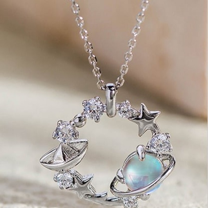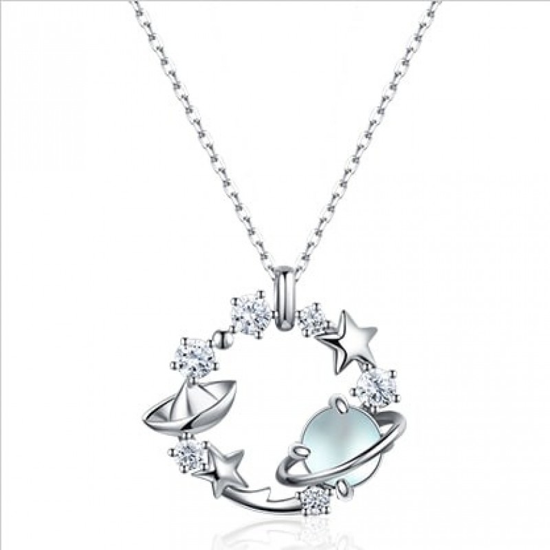 Fanci Fan Qi серебряные украшения Lianlian Planet голубое стекло камень ожерелье женский 925 серебро планета ключица цепь кулон R$555.0 |
